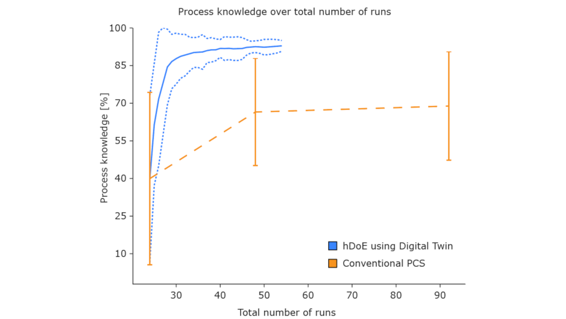 在基于行业相关生物制药生产工艺的模拟研究中,我们可以证明,在获得与最终产品质量相同的工艺知识前提下,我们可以将所需的实验总数减少50%以上(图 2)。如果您对更多技术细节感兴趣,请阅读该论文的原文¹!