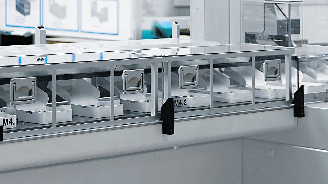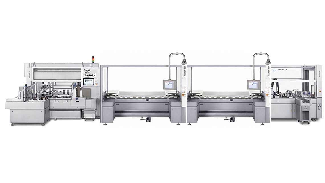 迪威德拉解决方案中的上装式全纸包装机的模块化概念及其高度自动化,可实现灵活、安全和高效的小批量包装。除了西林瓶、注射器和注射笔/自动注射器外,这些机器还可以包装带有各种辅助组件的组合包装,例如针头、小册式说明书、输液管/支持组件和患者教育材料。这两台机器的配置包括全自动折盒,加装纸托,说明书成捆装载,版本控制,相机检测和更多配置。Sharp制药服务还选择了在机器中加装人工上料的模块,这使他们能够处理各种组合包装,从而满足客户复杂的包装要求。