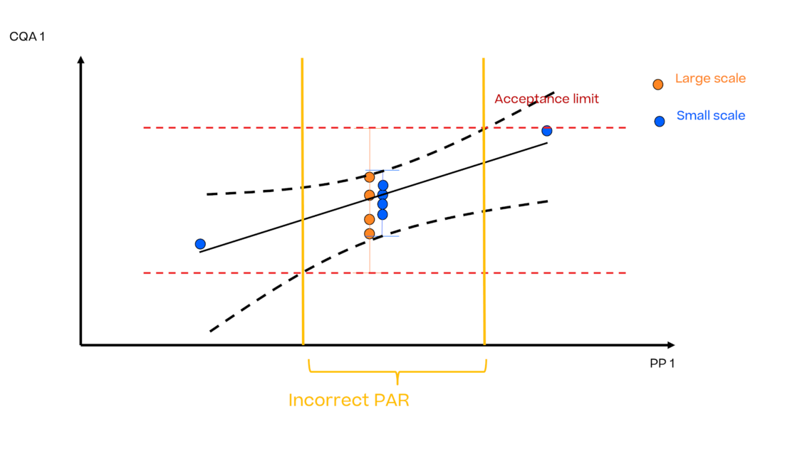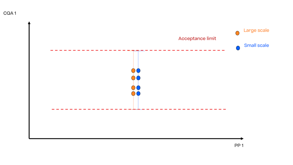如果小规模数据对大规模数据具有“代表性”(见ICH Q10),则大规模和小规模数据之间不存在偏移且两个方差相同。