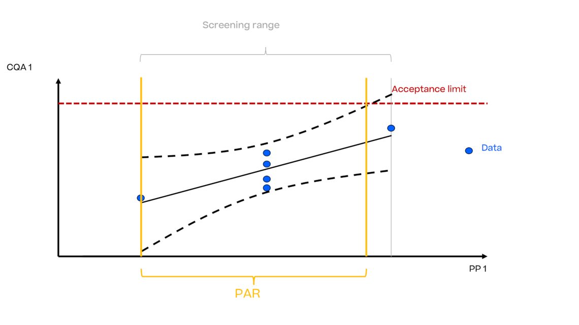 典型的数据驱动方法是将模型的不确定性与接受限相交,以得出ICH Q8中所述的已证明的接受范围。