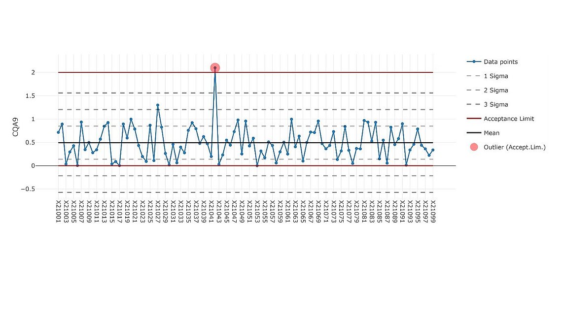 数字特征按连续顺序绘制成折线,应用于例如CPV的趋势分析,以评估过程的稳健性和识别趋势。