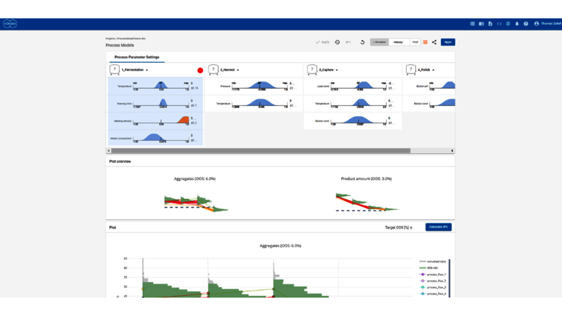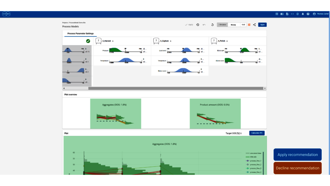 数字阴影和数字孪生在流程开发和流程验证过程中发挥作用,但在重复生产过程中,它们可充分发挥其潜力。这就是我们使用独特创新的端到端流程模型来预测偏差的影响,并帮助更快地管理和论证偏差的原因。这是一种数字阴影应用,因为它不能实时连接或控制流程。然而,它却能节省昂贵的调查以及纠正和预防措施(CAPA)的费用,因而具有巨大的优势。