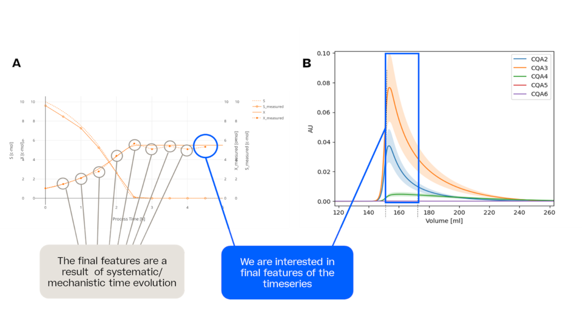 生物制药生产中的大多数工艺步骤都具有时间动态行为。我们可以利用对关键质量属性、代谢物和产品数量的时间演变的测量结果,而不是查看最终值,例如发酵结束或色谱的最终池值。