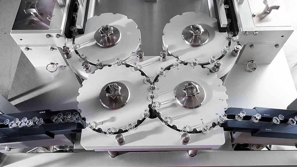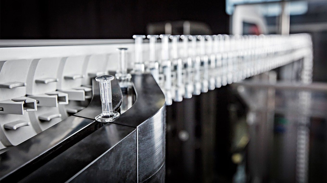 请放心,您的注射器将在我们安全、温和及高效的传送带上有一段顺利的旅程。它们不接触你的针头护帽或推杆,也没有玻璃与玻璃之间的接触,这意味着注射器产品破损的风险更小。