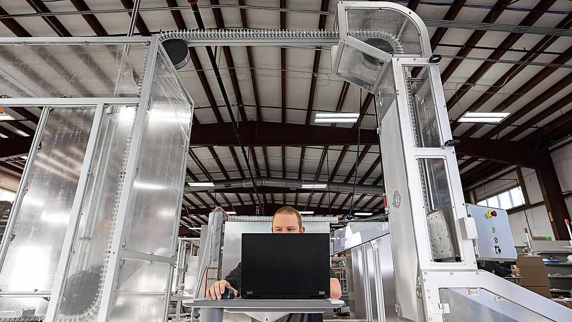 利用我们丰富的经验,与您一起设计为您提供方便,确保性能和产品质量的传送线。您甚至可以安装我们的高架传送带,在头顶上传送产品,以方便进入您产线的其他区域。在操作过程中,我们的人体工程学解决方案保证了操作舒适性。